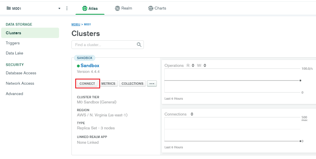 MongoDB의 shell을 다운로드하기 위해서 mongodb 사이트로 이동합니다. 그리고 로그인 단계를 거친 이후에 Atlas탭의 Clusters를 보시면 CONNECT라는 버튼이 하나 있습니다.