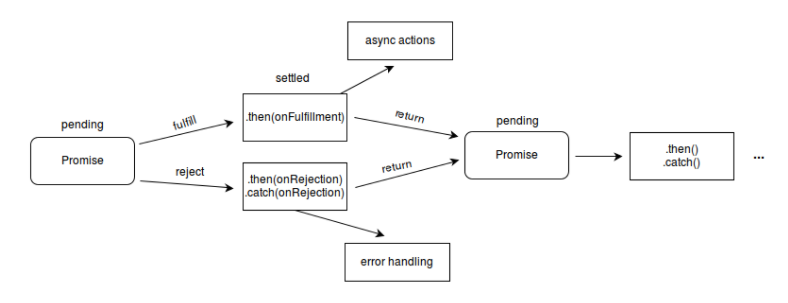 Promise의 프로토타입을 보면 Promise.prototype.then(), Promise.prototype.catch() 함수가 있습니다. 또 이 함수의 반환 값은 다시 프로미스이므로 계속적인 연결이 가능합니다.