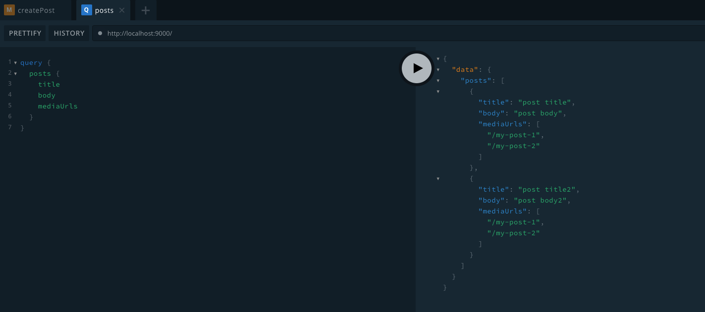 mutation createPost($title: String, $body: String, $mediaUrls: [String]){