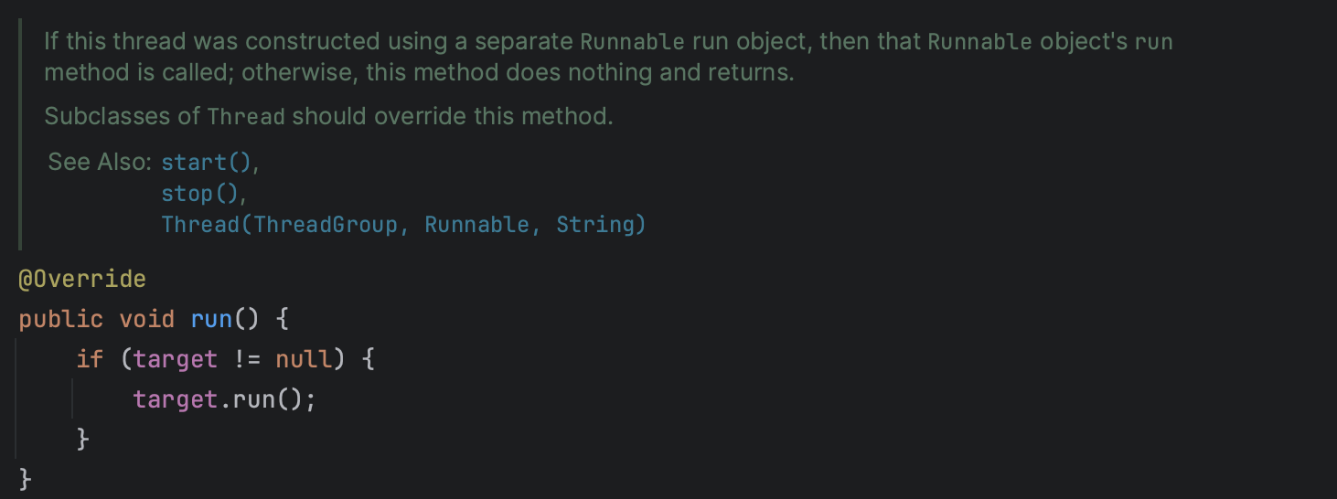 'Thread' 클래스에는 'run()' 메서드가 존재한다.