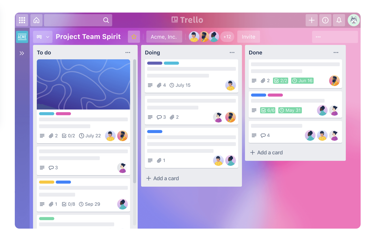 주요 기능으로는 카드 및 보드 생성, 작업 추가, 기한 설정, 태그 및 라벨링, 팀 협업등의 기능이 있습니다.