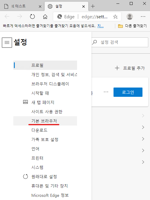 기본 브라우저는 엣지(Edge)! 그리고 사용 가능한 액티브액스(ActiveX) 모드