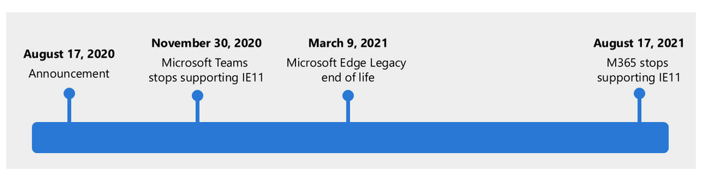 마이크로소프트(이하 'MS')에서는 공식적으로 IE의 지원 중단을 발표했습니다. 2020년 8월 17일에 공식적으로 홈페이지를 통해서 알렸으며 2020년 11월 30일에는 MS에서 사용하는 Teams라는 앱의 연동을 IE 중단하기로 결정했습니다.