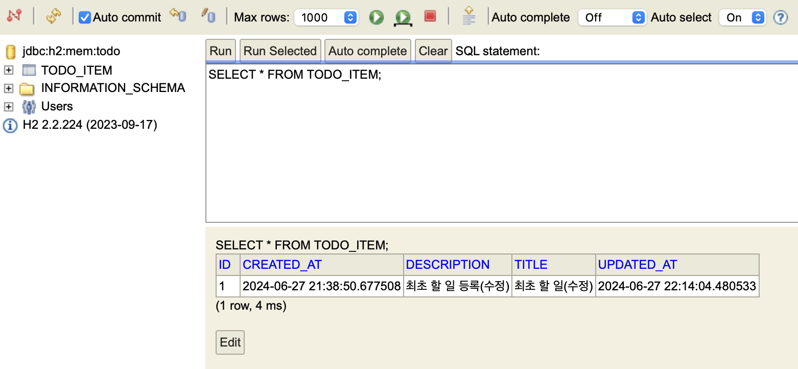 데이터가 정상적으로 수정된 모습도 확인할 수 있습니다.