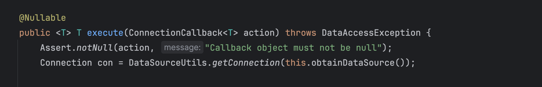 이렇게 만들어진 데이터소스는 JdbcTemplate에서 실행할 때 주입받은 데이터소스 정보를 가져와서 사용합니다.