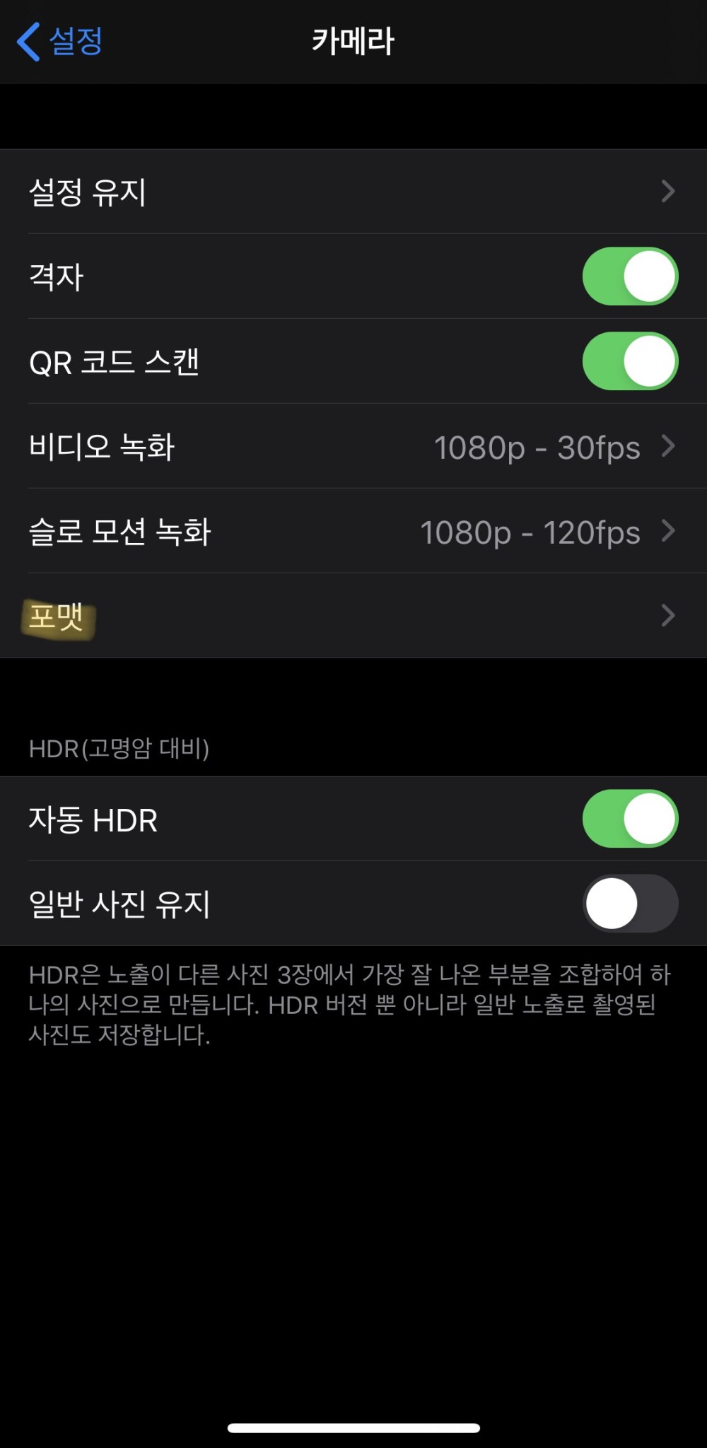 HEIC 파일을 변경하는 방법으로는 아이폰 설정을 변경하는 방법입니다. 이 방법을 사용하면 기존의 JPG 파일 포맷을 그대로 사용할 수가 있습니다. 사용 방법은 다음과 같습니다.