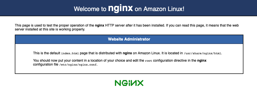 설정이 정상적으로 됐다면 NginX가 실행되게 되고 퍼블릭 주소에 접속하면 아래와 같은 화면이 등장하게 됩니다.