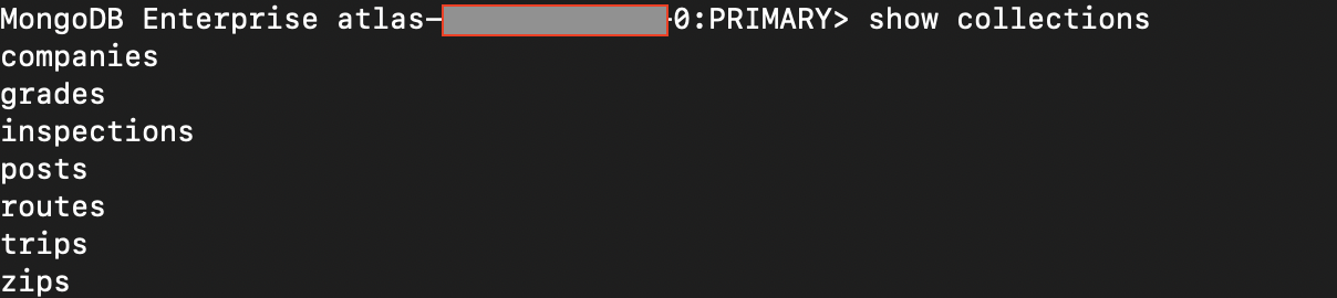 쉘을 이용해서 Atlas cluster에 접근했다면 이제 MongoDB에 어떠한 DB들이 있는지 확인해 볼 수 명령어가 필요합니다. 우선 DB들을 볼 수 있는 명령어입니다.