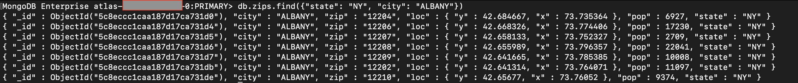 db.zips.find({"state": "NY", "city": "ALBANY"})