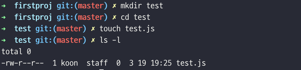 touch 명령어를 이용해서 파일 3개를 생성했고 모두 빈 파일입니다. 그리고 파일이 생성되었는지 확인하기 위해서 'ls -l'명령어를 통해서 확인해 보았습니다.