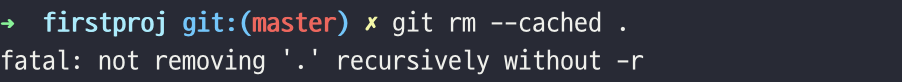 현재 디렉토리에 있는 모든 소스를 제거하기 위해서 git rm --cached . 을 이용합니다. 하지만 다음과 같은 에러가 발생합니다.